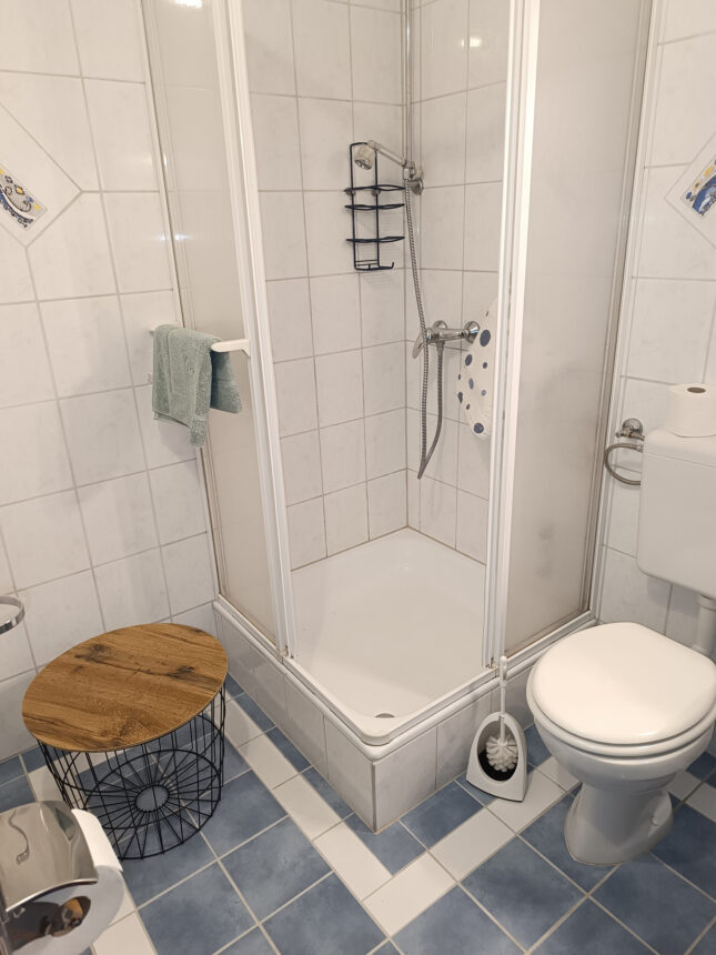 Ausstattung: 1 Schlafraum mit Doppelbett, Kühlschrank, Herd, Backofen, Wasserkocher, Kaffeemaschine, Grundausstattung an Geschirr, Gläser und Besteck, Esstisch, eine Schlafcouch, Satelliten TV, Balkon, Kleiderschrank, Bettwäsche, Handtücher vorhanden, kostenfreie WLAN-Nutzung, Haustiere auf Anfrage Sanitär: Dusche, WC, Waschbecken